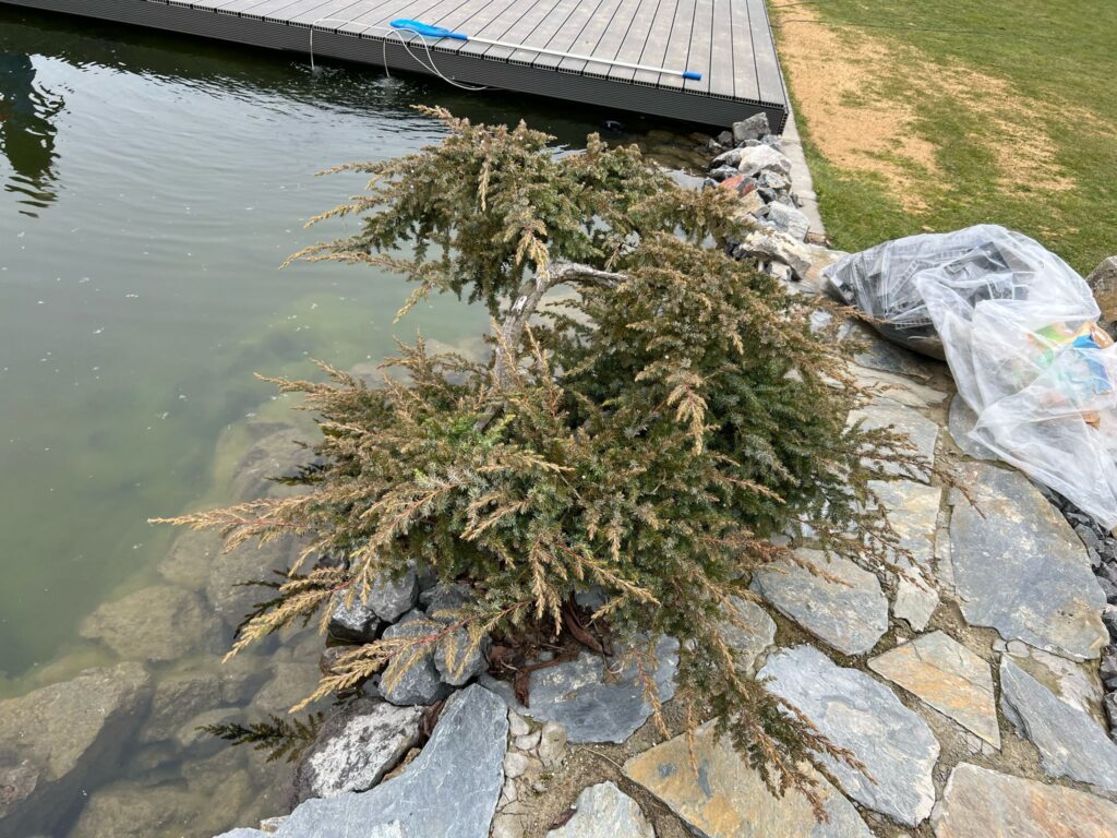 Brzegi oczka wodnego można ozdobić kamieniami, korą, drewnem lub żwirem, aby wyglądały bardziej naturalnie. Oczywiście pomysłów jest milion, więc możemy zrobić to po swojemu 🙂 Ważne jest także oświetlenie do oczka wodnego, wygląda to po prostu mega.